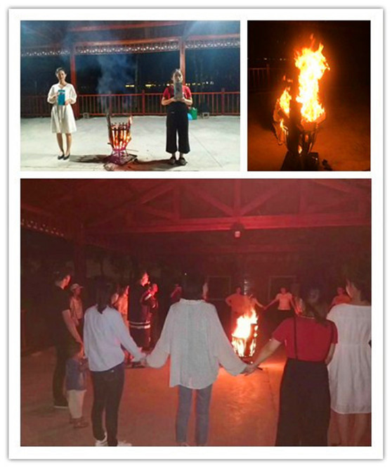 晚會一開始,有小伙伴為大家?guī)砑磁d表演,歡聲笑語聲隨著火焰節(jié)節(jié)攀升,大家圍成一圈,玩起了我們今天的第一個游戲“愛的抱抱”,考驗?zāi)愀』锇閭兙烤故撬芰嫌亚檫€是真情實感的時刻到啦。在主持人的口令下,幾人抱成團,落單者被淘汰,最終麥收的溫丹霞和馮莎莎成為最后幸存者,獲得了我們準備的獎品。