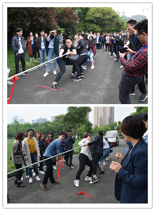 第一天的拔河項目雖然遭遇了滿30減15的天氣大力度優(yōu)惠,但降溫卻絲毫抵擋不住甬潤小伙伴的參賽熱情。各部門派出三名男生和三名女生,采用三局兩勝制決出前三名。小伙伴們個個鉚足了勁,其他人也沒有閑著,都在為自己部門的隊員加油。在裁判放繩吹哨的那一刻,整個比賽場地頓時沸騰起來,此起彼伏的“一二 一二”節(jié)奏聲以及啦啦隊的加油聲在鄞州公園上空回蕩。