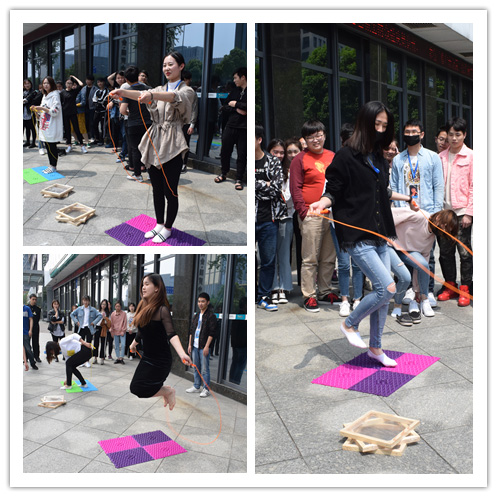 最后一天跳大繩比賽,參賽選手們旋轉(zhuǎn)跳躍,閉著眼,動作矯健,搖繩的隊友穩(wěn)而不亂,助威的小伙伴聲嘶力竭,繩子飛快甩動的聲音呼呼生風(fēng),一時間繩子拍地聲、跳動聲、加油聲聲聲入耳,合奏成一段激昂的進行曲。在跳大繩這個環(huán)節(jié)中技術(shù)、游戲、聚目分別獲得3分、2分和1分。