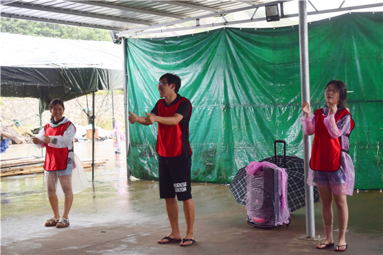 聽著海浪拍打沙灘的聲音,浪漫的篝火晚會(huì)點(diǎn)燃了大家的激情,但是天公不作美,篝火晚會(huì)過程中又下起了大雨,活動(dòng)不得不提前結(jié)束了。