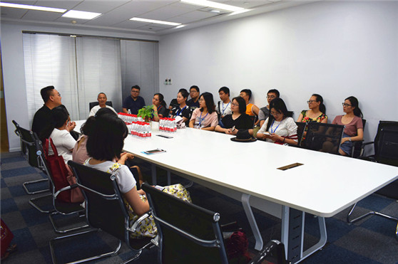 7月12日下午,浙江高校創(chuàng)業(yè)導(dǎo)師調(diào)研團(tuán)一行近40人來到我司考察交流,總裁助理潘焱彬接待了來賓,并陪同參觀了公司環(huán)境。