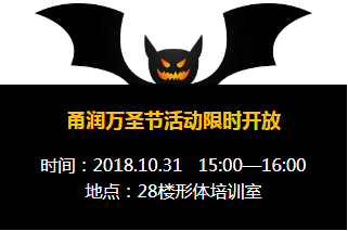 再忙也要“鬼混” HALLOWEEN萬圣節(jié)就要到了,作為一年中最放肆玩樂的節(jié)日,是時候讓心中的小惡魔出來搗蛋一下了。在這個以刺激游戲和恐怖裝扮風靡全球的狂歡之日,甬潤的小伙伴該去哪兒“鬼”混呢? 為了讓大家度過一個刺激又難忘的萬圣節(jié),10月31日下午15:00甬潤萬圣節(jié)活動限時開放,抓住機會享受瘋狂的魅力,徹底放松緊張的心情,好好過把癮吧!