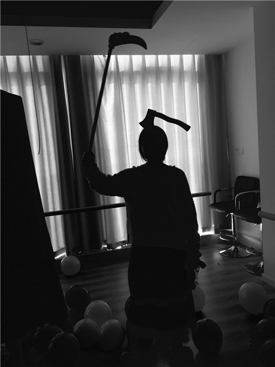 萬圣節(jié)當然少不了鬼怪 萬圣節(jié)前夕,平時普通的形體培訓室搖身一變成為鬼怪橫行的萬圣節(jié)恐怖室,兇神惡煞的死神拿著鐮刀一步一步向你靠近,蒼白的骷髏頭吊鬼在門口用無神的雙眼向你示威,還有各種鬼怪面具挑戰(zhàn)你的極限,平常恐怖片里出現(xiàn)的情節(jié)在這里變成了現(xiàn)實,這里到處充滿歡樂詭異的節(jié)日氣氛。