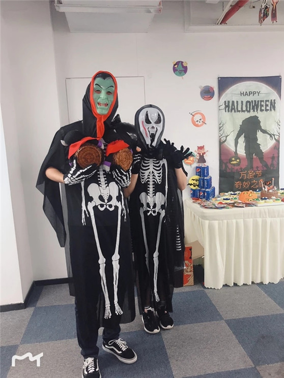 杭州小伙伴前線發(fā)來報道 這么歡樂的節(jié)日當然少不了杭州的小伙伴啦!外表可怕內(nèi)在溫柔的鬼怪穿梭在辦公區(qū),為努力工作的小伙伴們發(fā)放甜甜的糖果,萬圣節(jié)主題的下午茶增添了節(jié)日的儀式感,萌翻的小鬼頭蛋糕、美味香甜的南瓜燈蛋糕,還有多樣的小零食,看著就讓人眼饞。