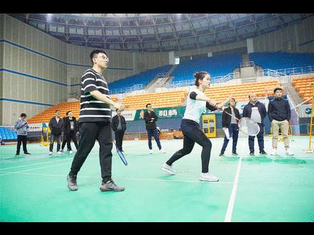 下午1點(diǎn)半,比賽正式開始,輕盈的吊球、精彩的扣殺,不論新手還是強(qiáng)手都紛紛使出渾身解數(shù)迎接對(duì)抗。隨著第一輪的淘汰晉級(jí),杭州混雙、男雙冠軍組成的三只隊(duì)伍此時(shí)加入混雙比賽。