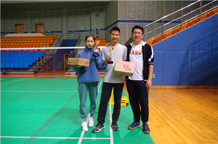 本次羽毛球賽場(chǎng)地為惠風(fēng)羽毛球館,男單、混雙兩個(gè)項(xiàng)目同時(shí)進(jìn)行,各4個(gè)場(chǎng)地,共96名選手報(bào)名參與,其中混雙38組、男單40組。比賽采取選手抽簽,對(duì)打晉級(jí)的模式進(jìn)行,每個(gè)隊(duì)伍都將以三局兩勝的賽制爭(zhēng)取出線,決出男單、混雙4強(qiáng)后再抽簽決定半決賽、決賽對(duì)手。本次比賽獎(jiǎng)品豐富,除了特制獎(jiǎng)杯外,冠亞軍及第四名獎(jiǎng)品分別為為airpods藍(lán)牙無線耳機(jī)、尤尼克斯羽毛球拍、小米恒溫?zé)畨?、小熊便捷式榨汁機(jī)。