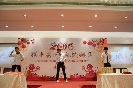 熱鬧的抽獎(jiǎng)及游戲環(huán)節(jié)使得全場(chǎng)氛圍瞬間升溫,伴隨著跌宕起伏的忐忑心情,迎新晚會(huì)也即將告一段落,愉悅的時(shí)光總是如白駒過隙。晚宴的時(shí)間悄然而至,在甬潤(rùn)同事進(jìn)餐的時(shí)間內(nèi),同樣也是精彩紛呈,歡聲笑語間結(jié)束了2016年的迎新晚會(huì),在這里祝愿甬潤(rùn)全體員工在新的一年賺得盆滿缽滿,步步高升。