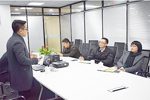 2月21日,寧波市經(jīng)信委戴主任、市經(jīng)信委軟件處蘇處長和鄞州區(qū)智慧辦張主任等一行人一起來到甬潤進行指導(dǎo)工作,總經(jīng)辦劉總和張總進行了接待。 下午四點,戴主任一行準時來到了甬潤科技。雙方在簡短的介紹之后,劉總先是帶著大家參觀了