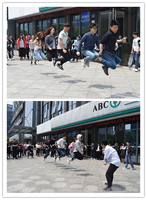 最后一天跳大繩比賽,參賽選手們旋轉(zhuǎn)跳躍,閉著眼,動作矯健,搖繩的隊友穩(wěn)而不亂,助威的小伙伴聲嘶力竭,繩子飛快甩動的聲音呼呼生風(fēng),一時間繩子拍地聲、跳動聲、加油聲聲聲入耳,合奏成一段激昂的進行曲。在跳大繩這個環(huán)節(jié)中技術(shù)、游戲、聚目分別獲得3分、2分和1分。