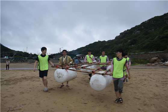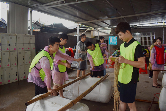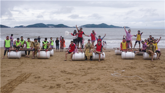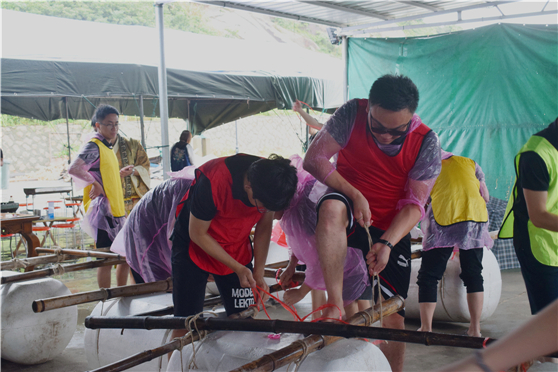 活動(dòng)進(jìn)行到第四個(gè)項(xiàng)目時(shí)雨終于停了,小伙伴都加快速度,全心全力將竹筏做好,這個(gè)項(xiàng)目同樣也考驗(yàn)了團(tuán)隊(duì)的配合度和大家的動(dòng)手能力。