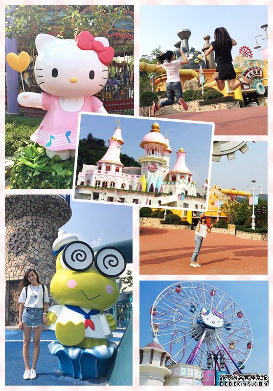 來到了第一站Hello Kitty館,這里有六大主題游樂區(qū),凱蒂貓小院、音之村、歡樂港灣、精靈森林、蒸汽王國、友誼廣場。 一到樂園門口,第一眼看到繽紛摩天輪,雖不大,但十分矚目,最刺激的地方在于,它有滑道,其中個別座艙在空中能滑動,這是目前世界第三臺,亞洲僅此一臺。