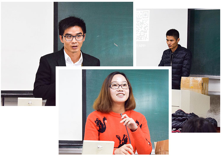 隨后甬潤科技的行政人事部王經(jīng)理上臺向大家具體介紹了甬潤公司的詳細情況,講了甬潤科技這幾年的發(fā)展和對未來的展望,并對同學們的疑問進行了一一解答。下一個環(huán)節(jié)是由從理工畢業(yè)的甬潤骨干向自己的學弟學妹們做個講述,將自己這幾年的心路歷程放到臺上來進行分享。
